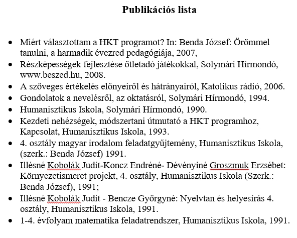 Amiért a 80-as években még – helyi és országos szinten – küzdött a legújabb tantervek alapelveiben, módszertani elvárásaiban a kétezres évektől már alapkövetelményként fogalmazódnak meg az országos dokumentumokban. Ő is részese volt annak a folyamatnak, amelyek során ma már lehetőség az iskolák számára az emberarcú pedagógiai program kialakítása.